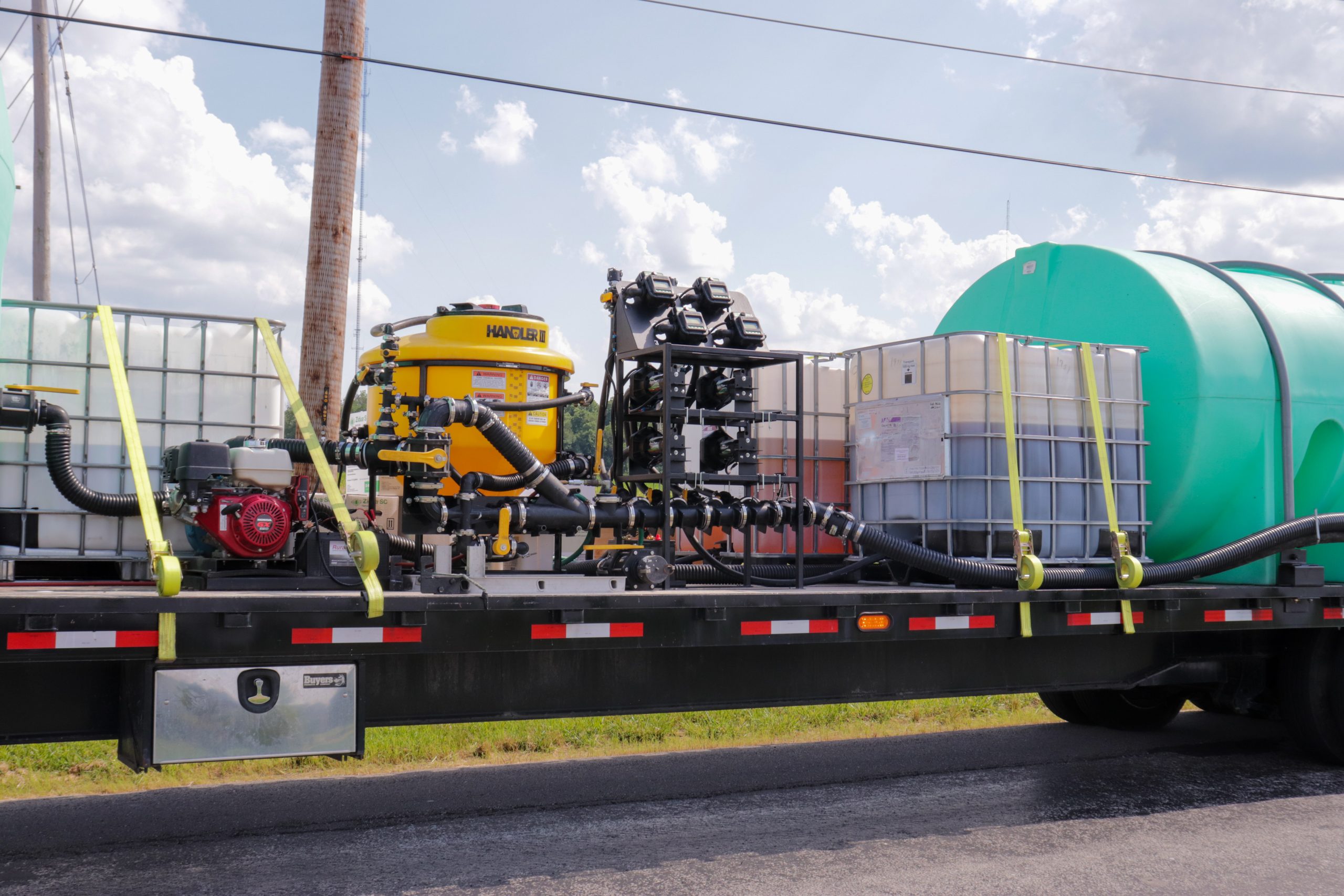 The Dura-ABS™ Direct Injection System comes with pumps, meters, plumbing and gauge kits, a metal frame and is available with 12 or 110 volts and EPDM, Viton, or Silicone seals.   The system direct injects herbicides into the carrier flow while simultaneously filling the sprayer.