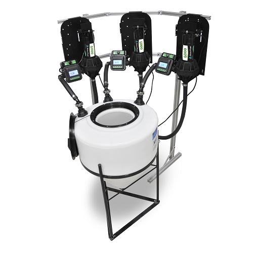 The Dura Auto-Batch System is an automated herbicide transfer system for easily and efficiently transferring fluids from one place to another. The operation is as simple as entering the amount you want dispensed and pressing Start.  Once activated, the pump will dispense the desired amount, then shut off automatically.